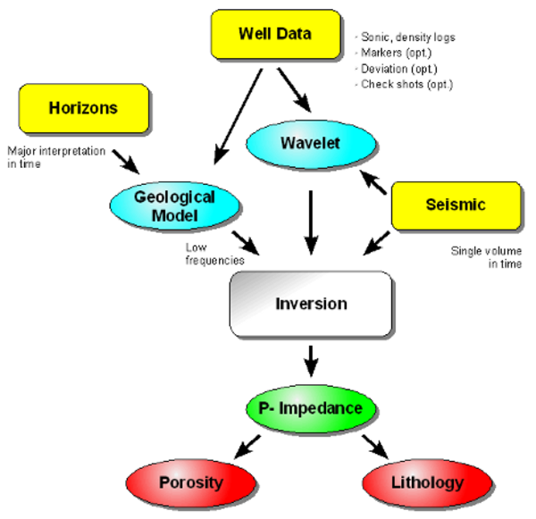- Often acoustic impedance can be related to porosity. The application of an impedance-porosity relation, derived from well log data, to the inverted impedance volume allows the mapping of the porosity distribution within the reservoir.